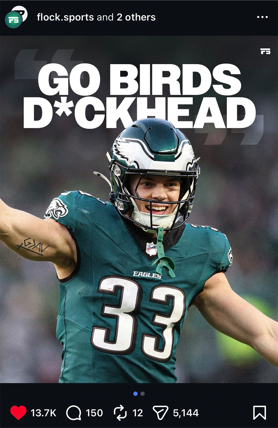 I created Flock Sports as a social media brand designed for sports fans to engage and build a community around the Philadelphia Eagles. Through compelling and engaging visuals combined with high quality graphic design, it has generated millions of impressions.